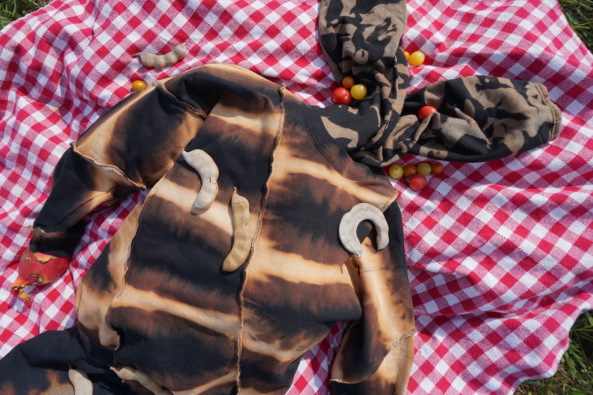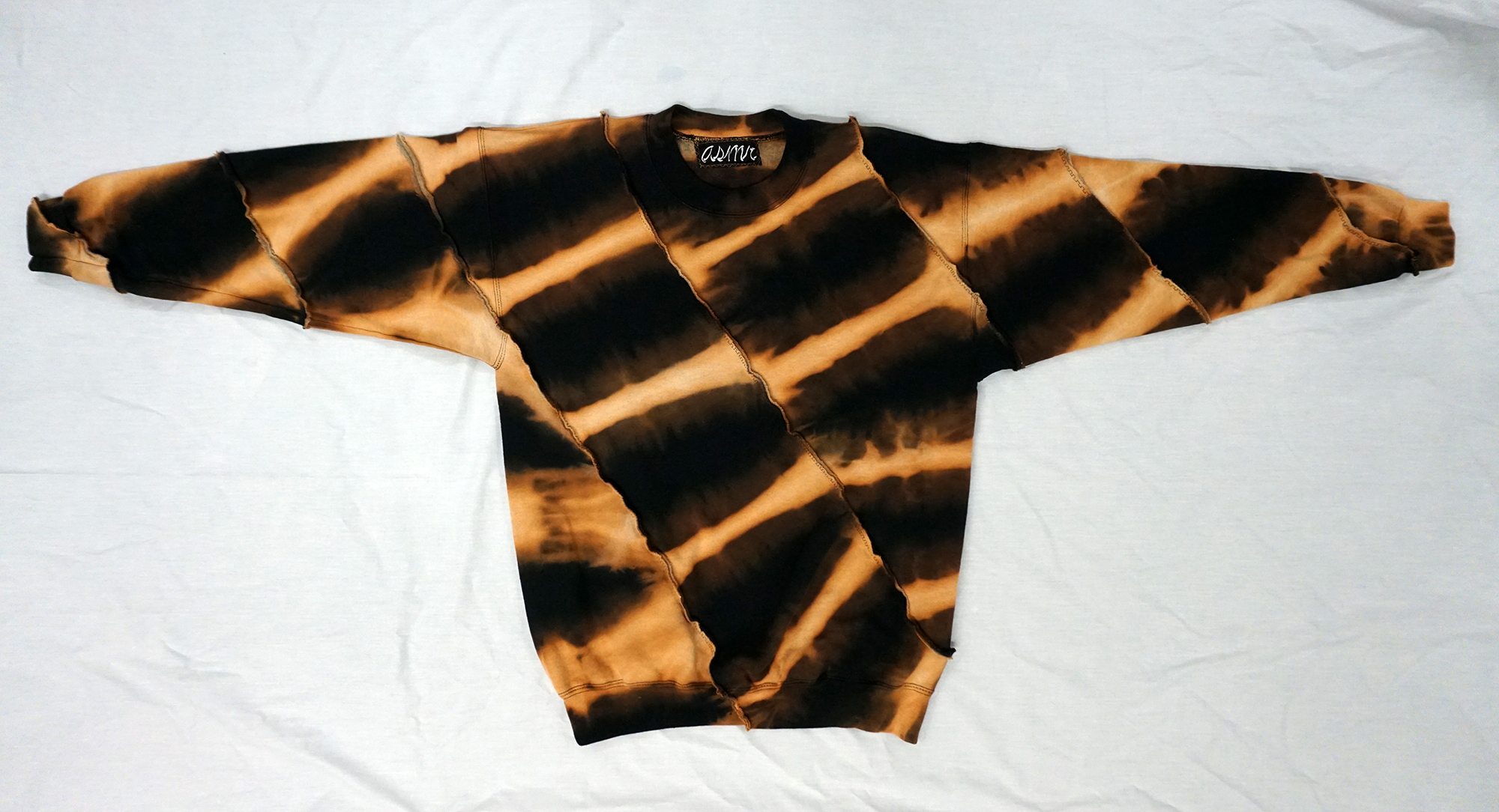 SIZE: MEDIUMISH (27" L / 21" W / 32" S) ✄ 1-of-1 crewneck sweatshirt ✄ cut into a ribbon, rolled up, bleached, resewn ✄ 90% cotton 10% polyester