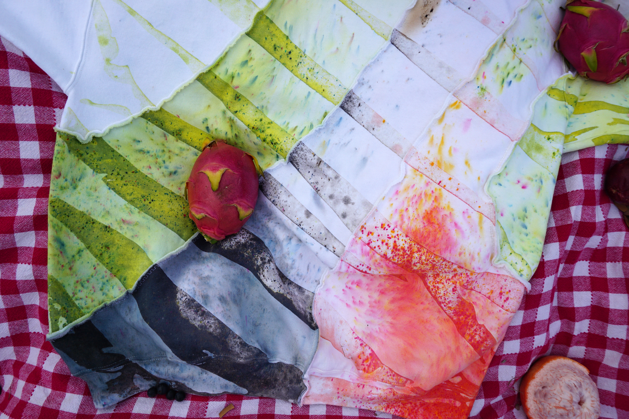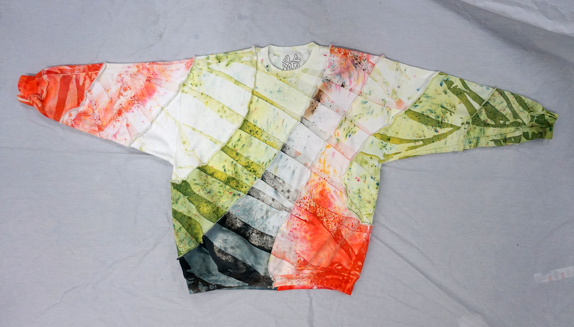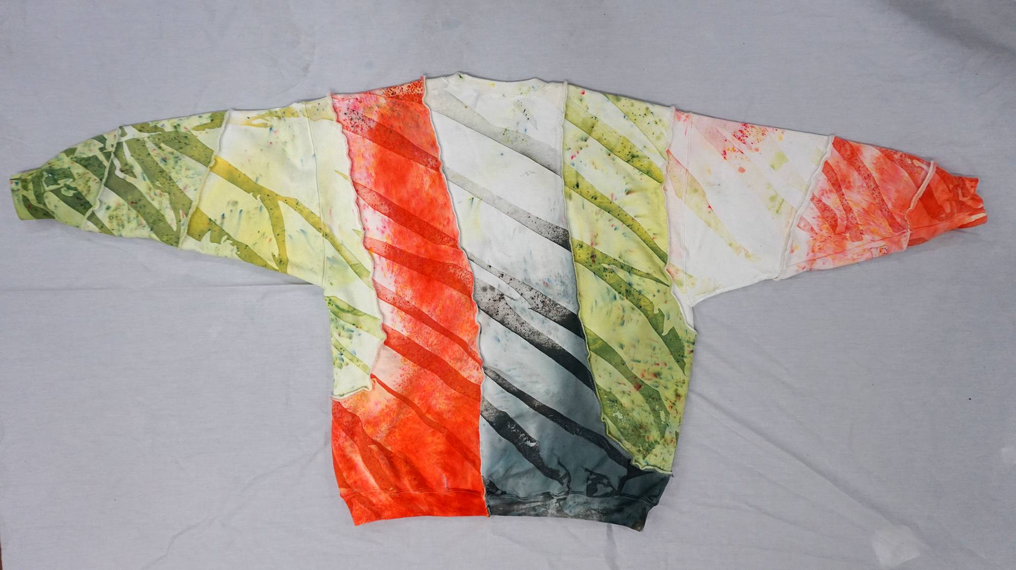 SIZE: XTRA LARGEISH (30" L / 25" W / 34.5" S) ✄ 1-of-1 crewneck sweatshirt ✄ cut into a long ribbon, dyed, resewn ✄ 90% cotton 10% polyester