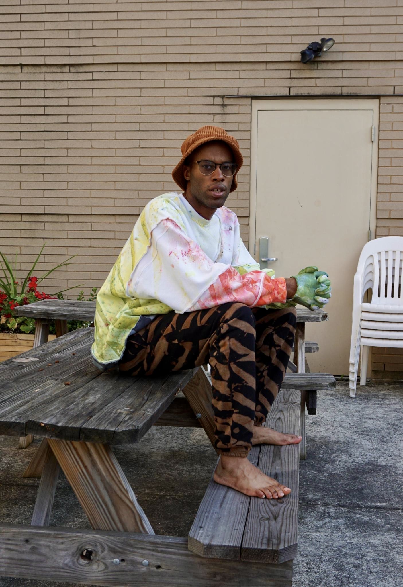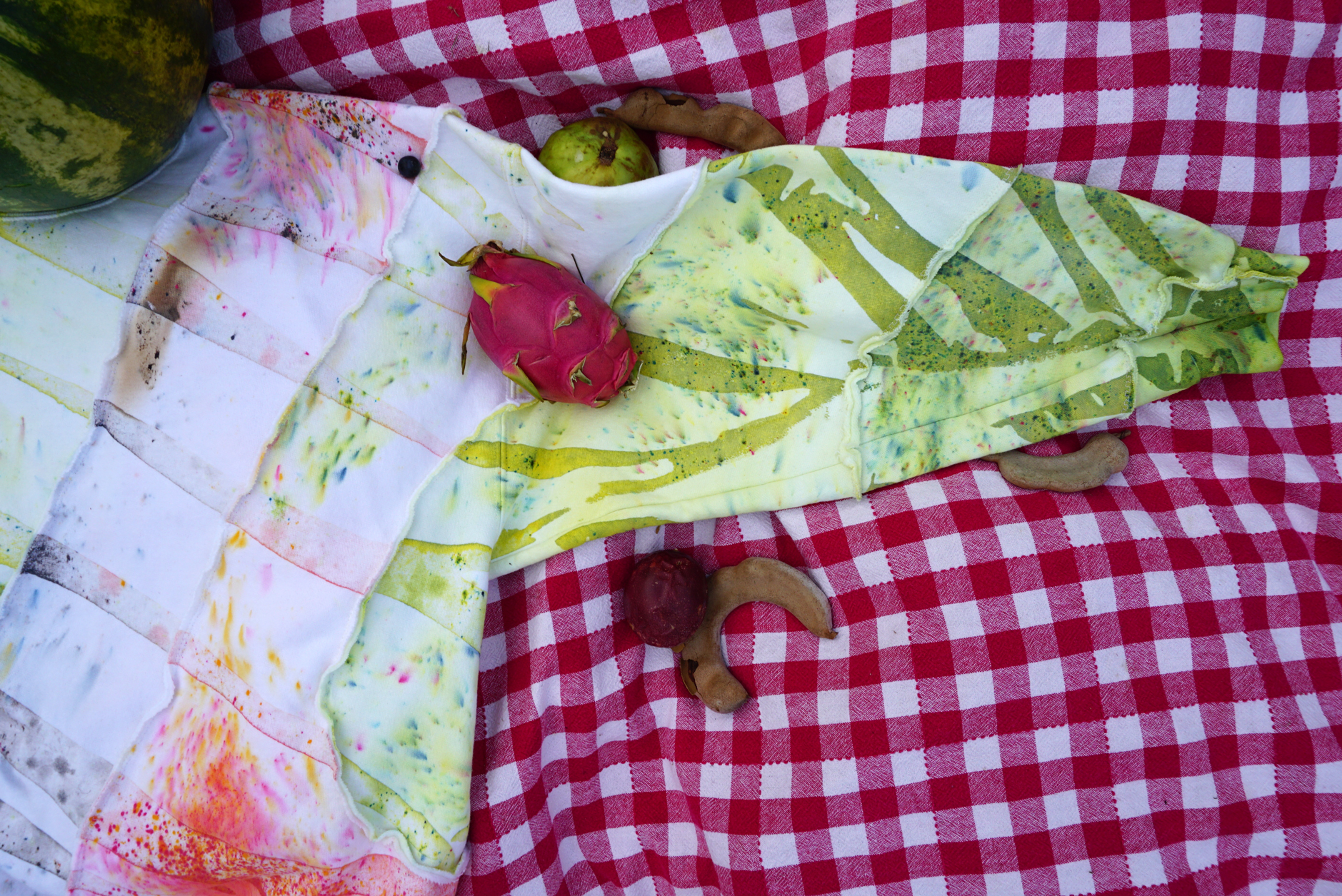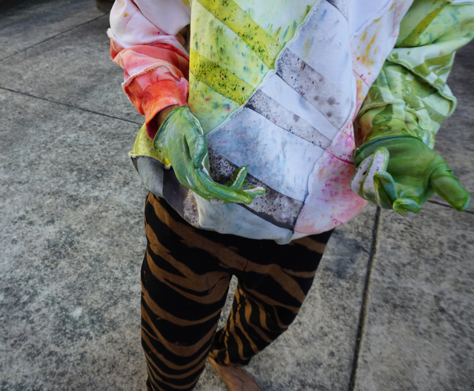 SIZE: XTRA LARGEISH (30" L / 25" W / 34.5" S) ✄ 1-of-1 crewneck sweatshirt ✄ cut into a long ribbon, dyed, resewn ✄ 90% cotton 10% polyester