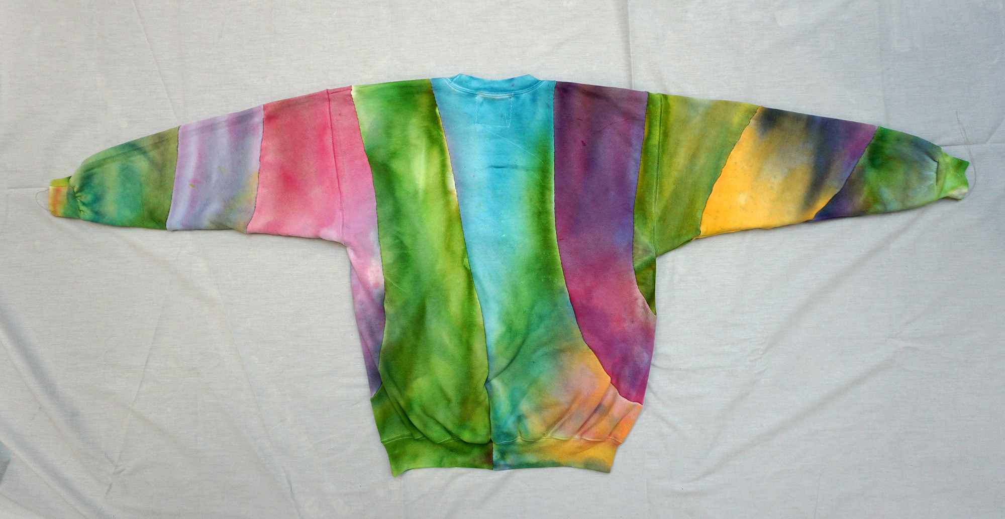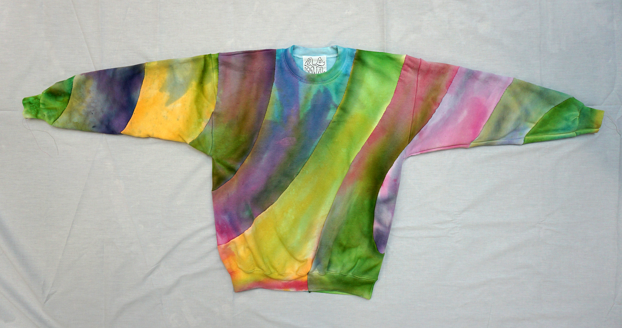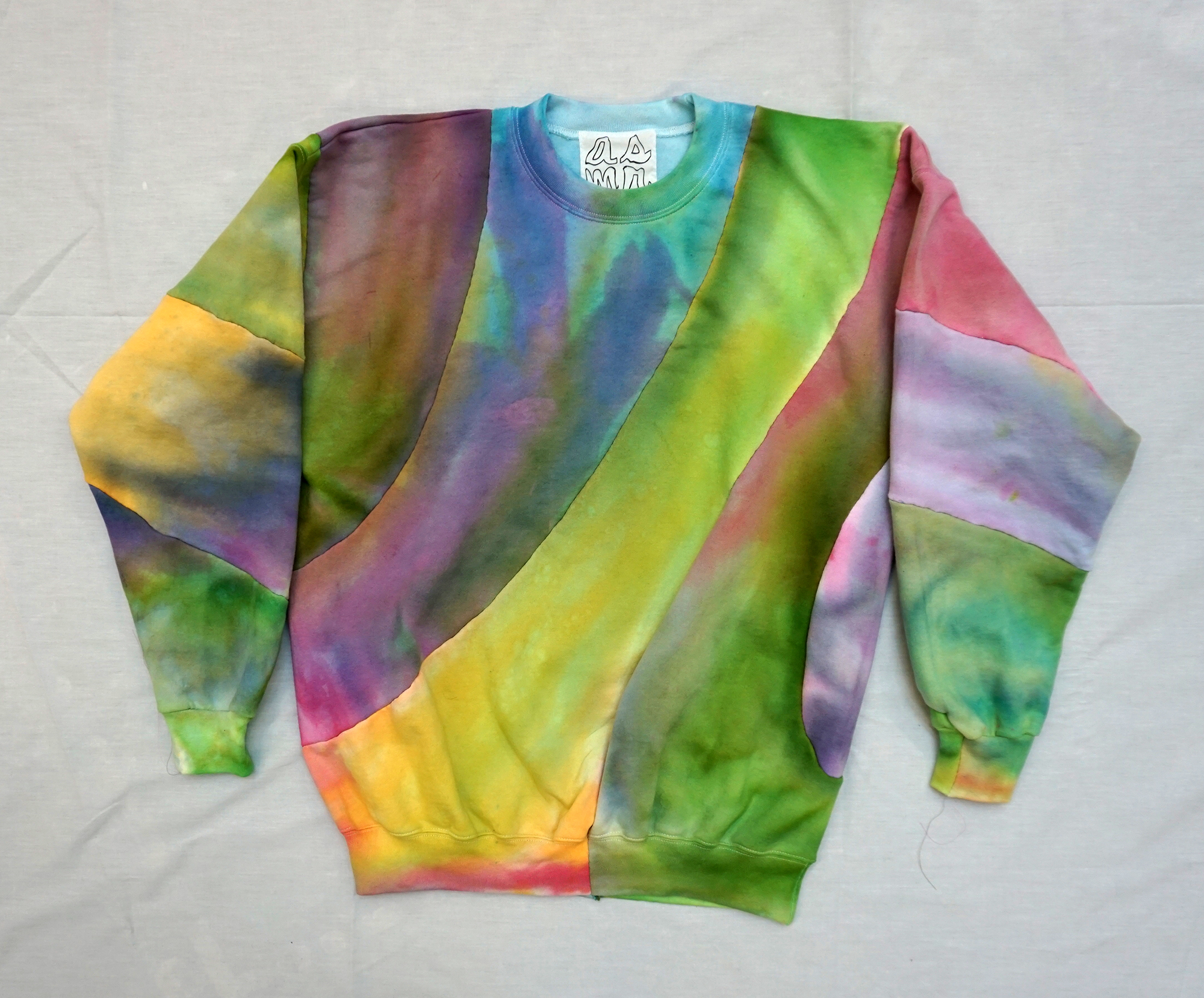 SIZE: LARGEISH (28" L / 22.5" W / 33" S) ✄ 1-of-1 crewneck sweatshirt ✄ cut into a ribbon, dyed, resewn ✄ 90% cotton 10% polyester