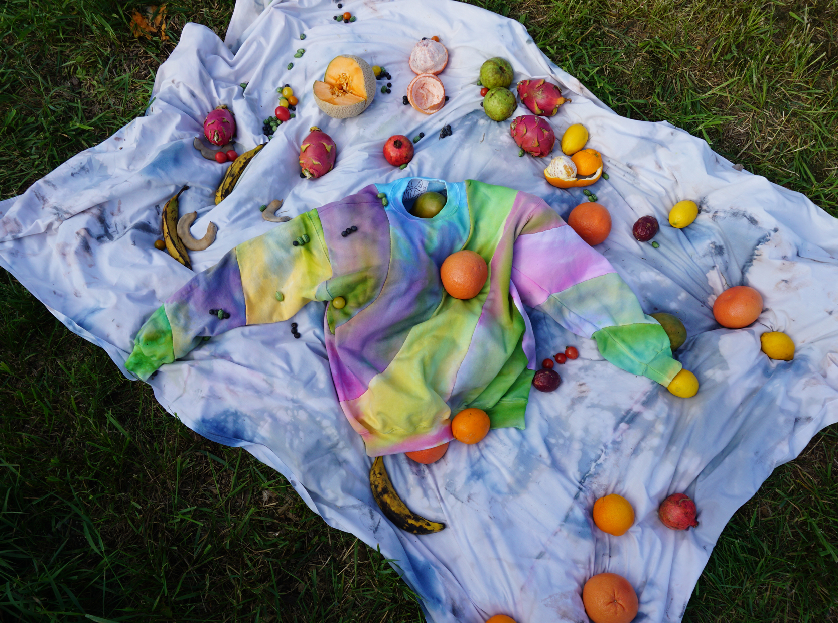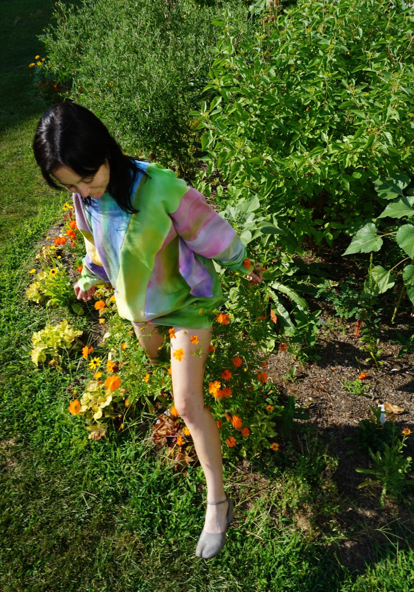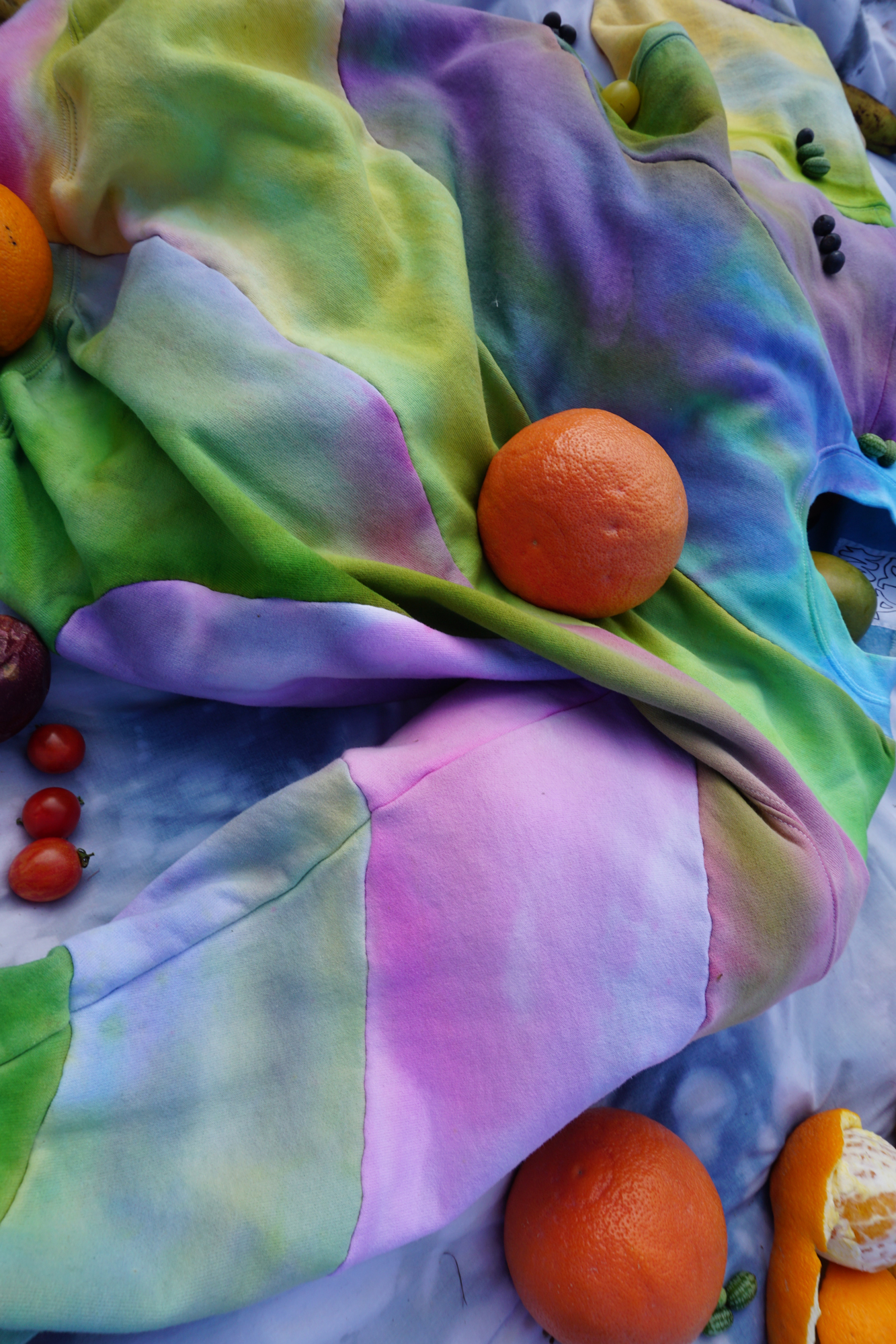 SIZE: LARGEISH (28" L / 22.5" W / 33" S) ✄ 1-of-1 crewneck sweatshirt ✄ cut into a ribbon, dyed, resewn ✄ 90% cotton 10% polyester