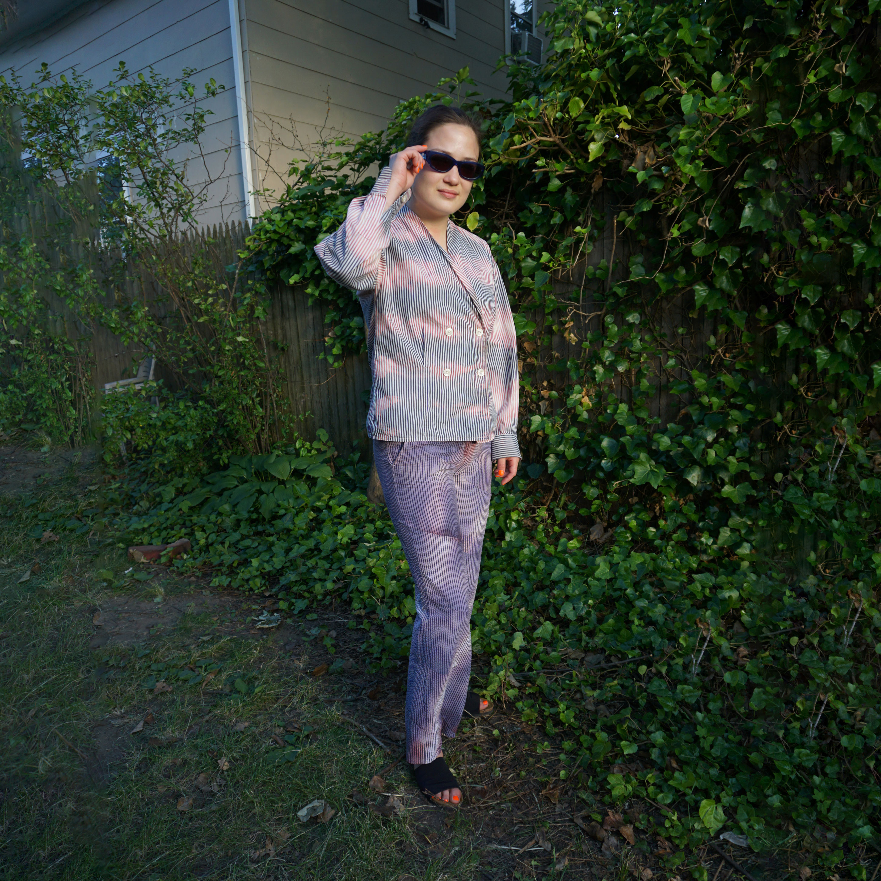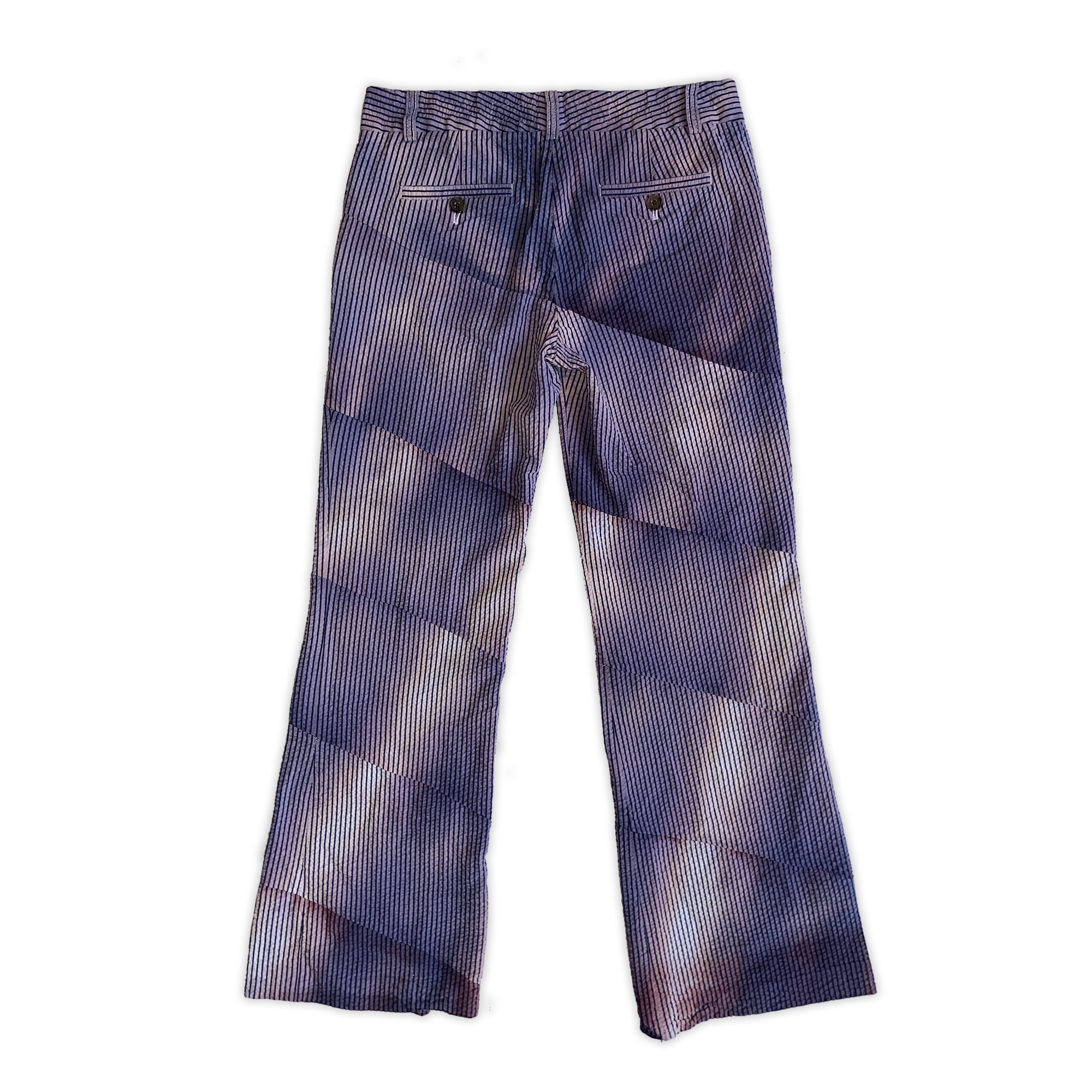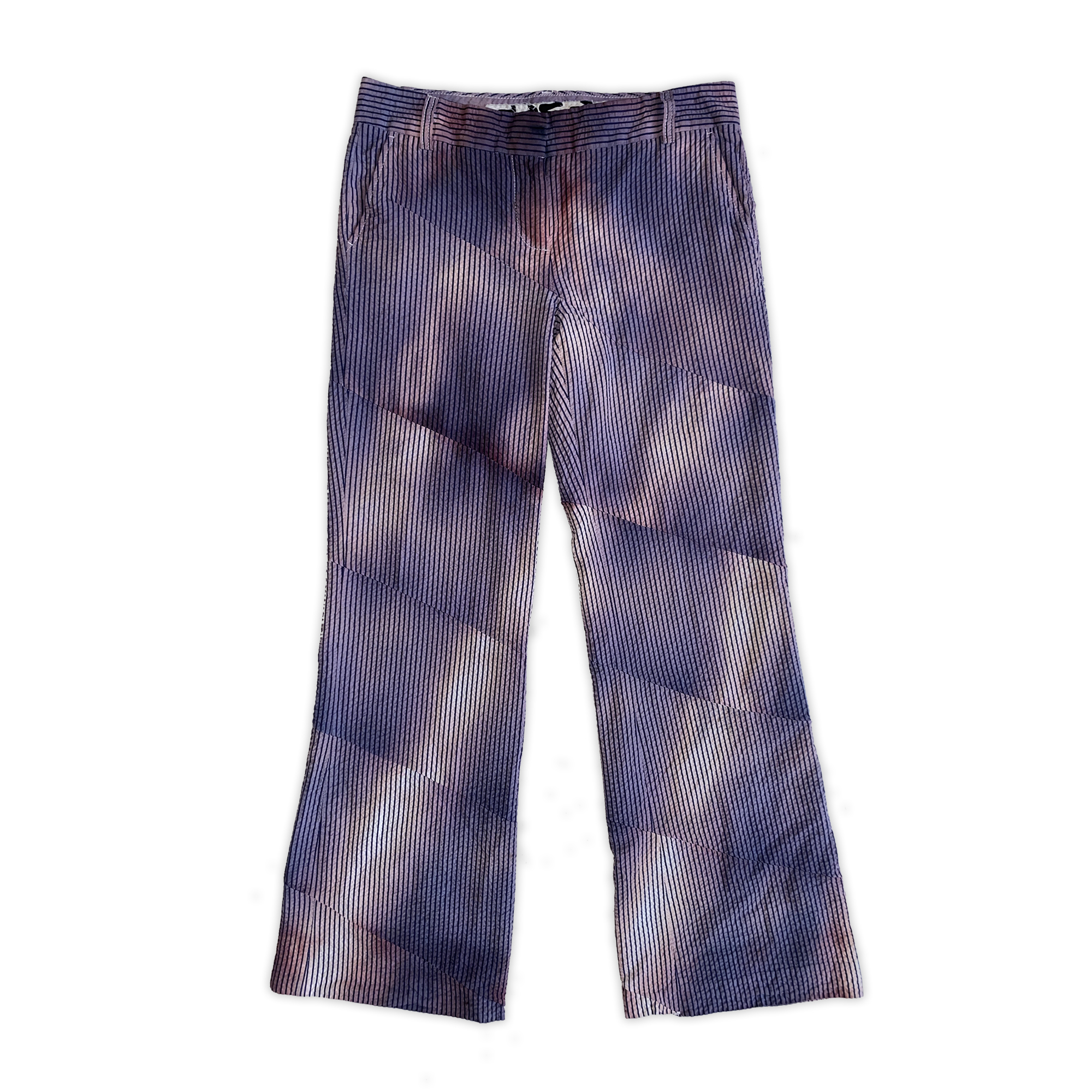 1-of-1 pair of hand-dyed crépon flares upcycled vintage 100% cotton cut into a ribbon, dyed, resewn