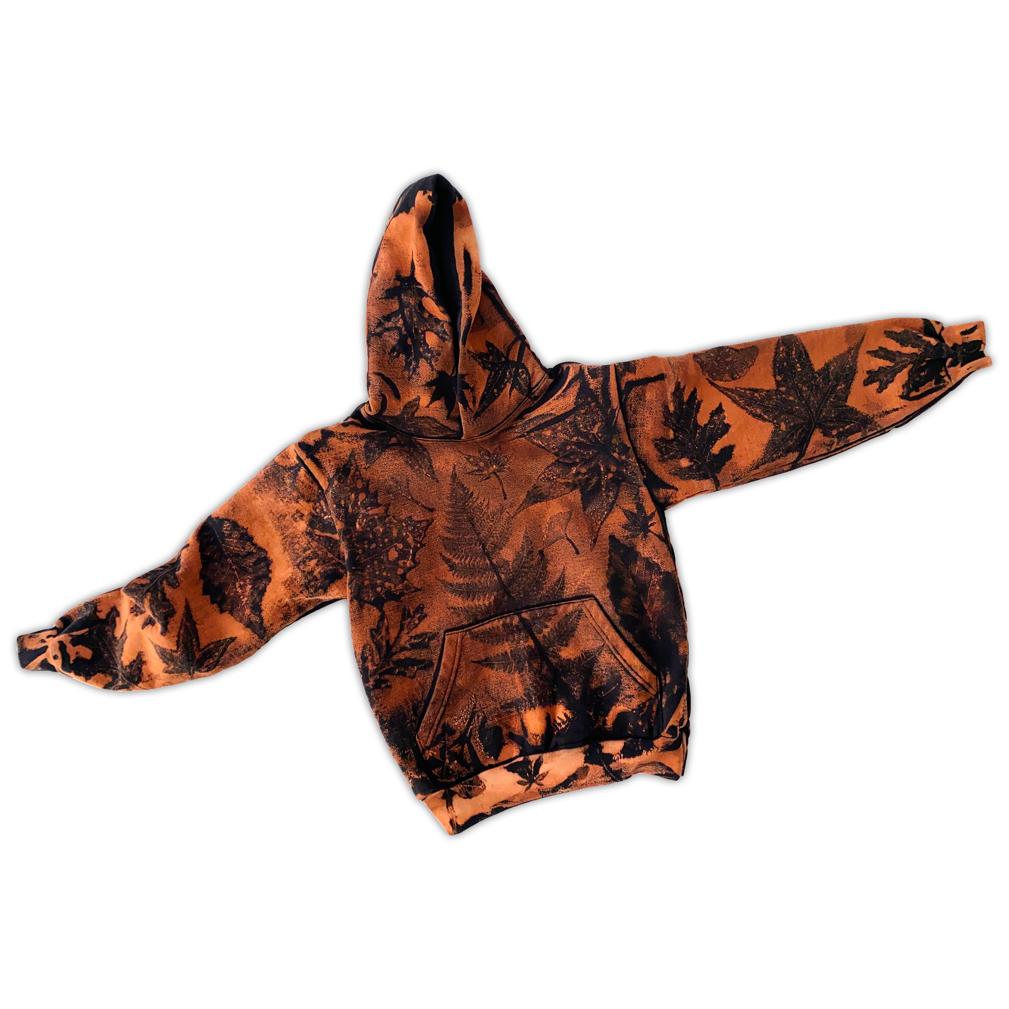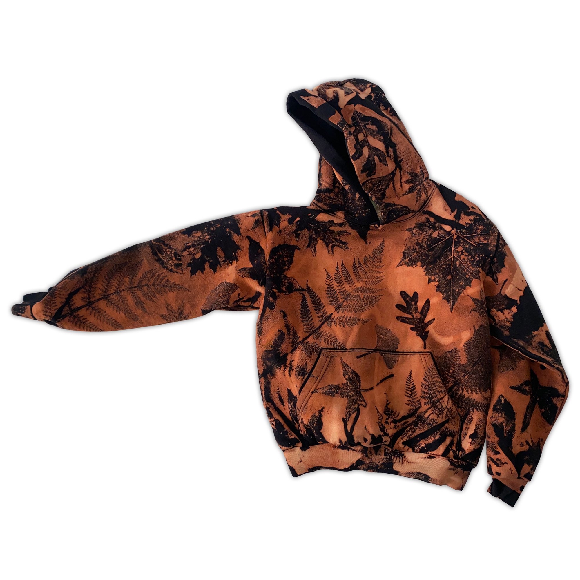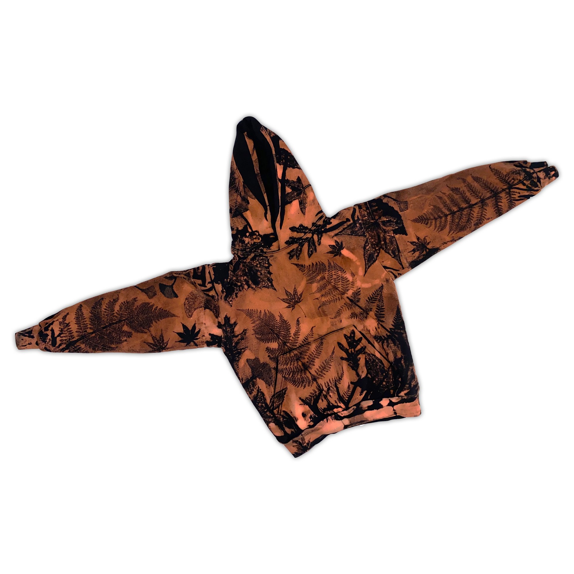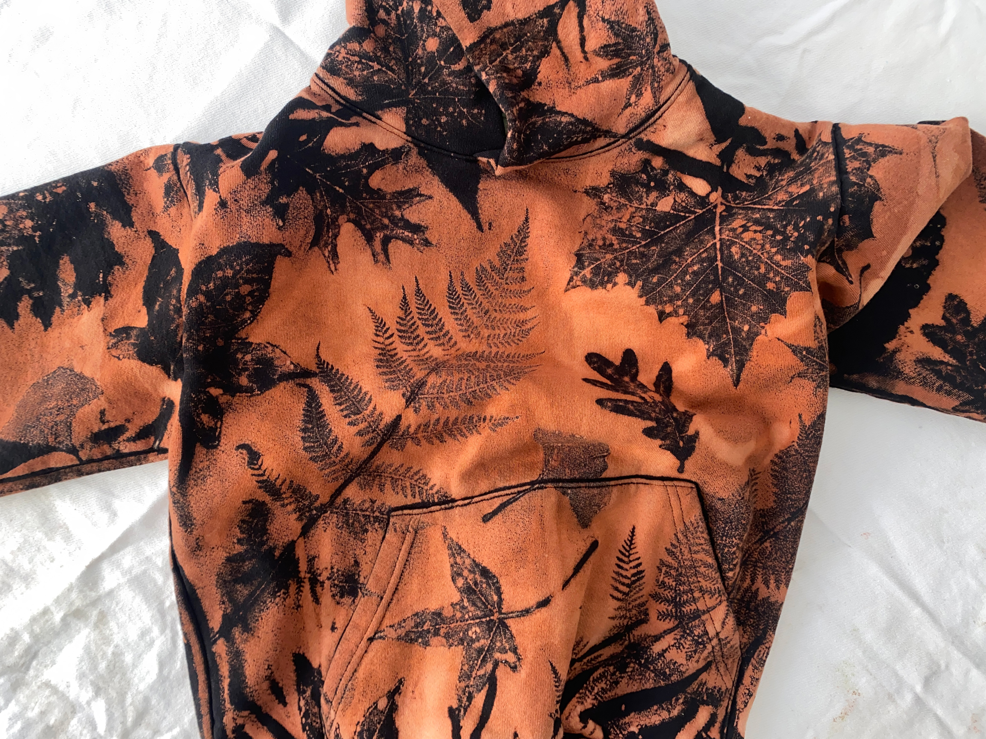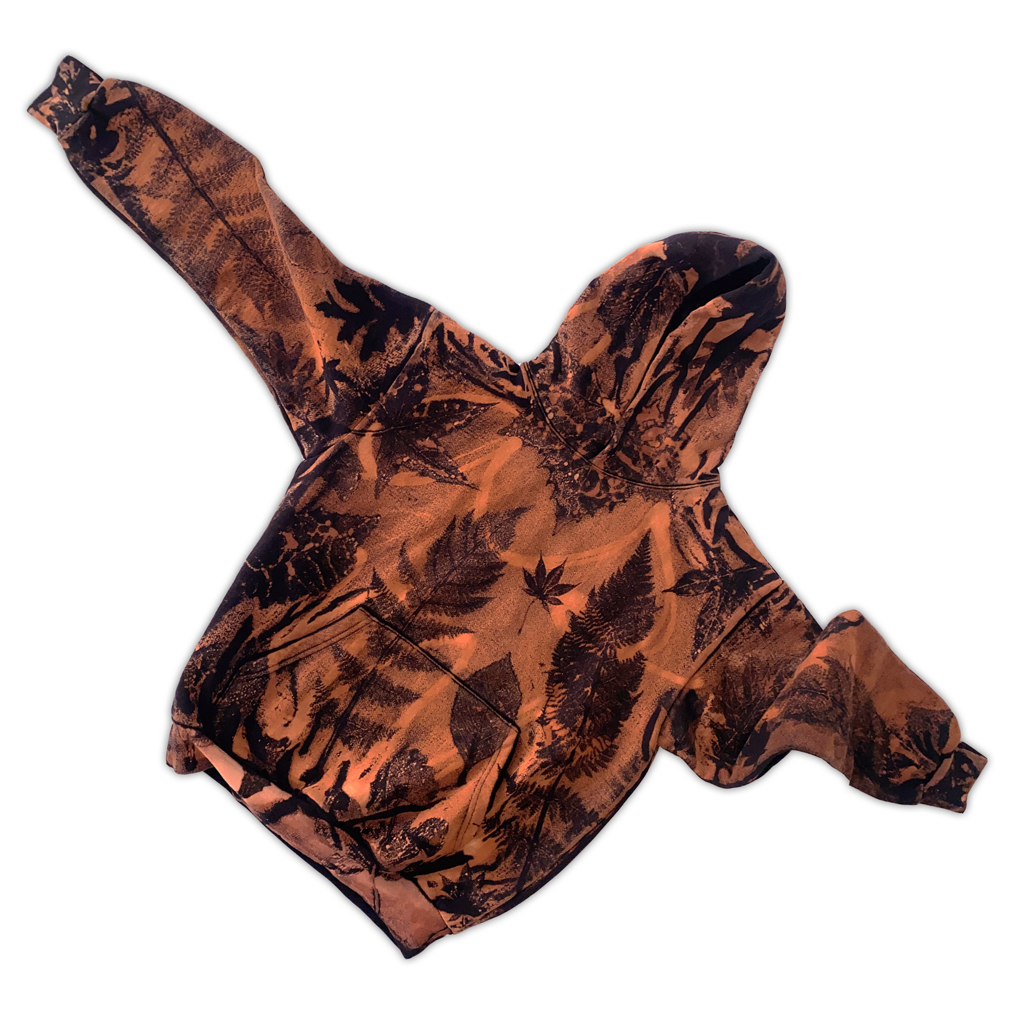 100% cotton hoodies 1-of-a-kind print on each ferns and leaves sustainably harvested in Northeastern US seasonal and made to order up to 4 weeks for shipment