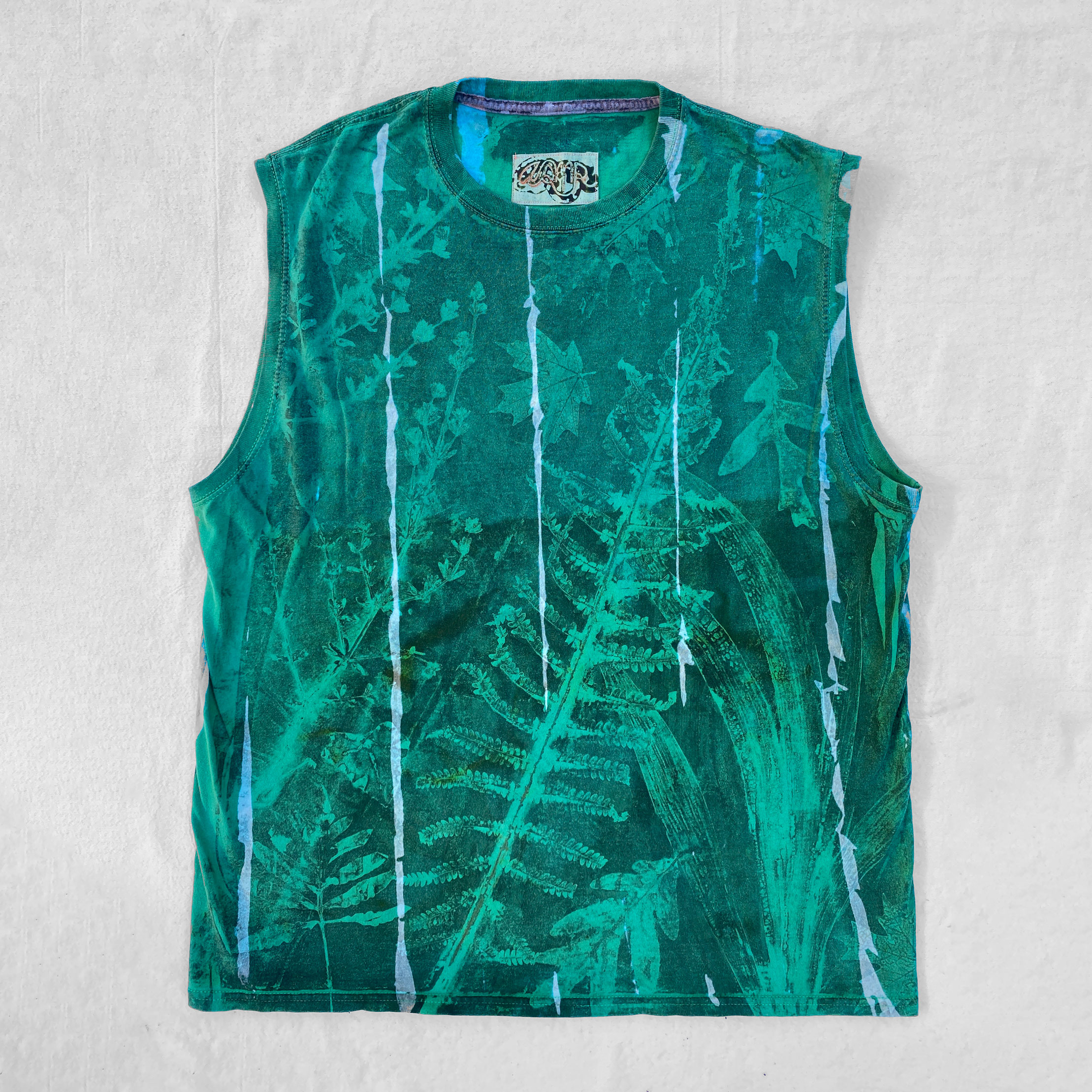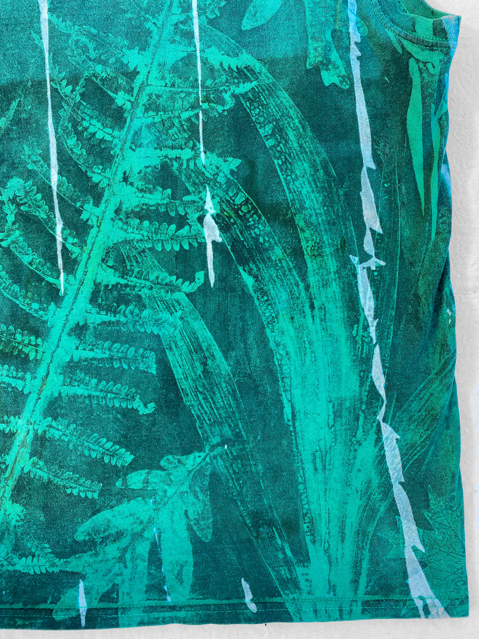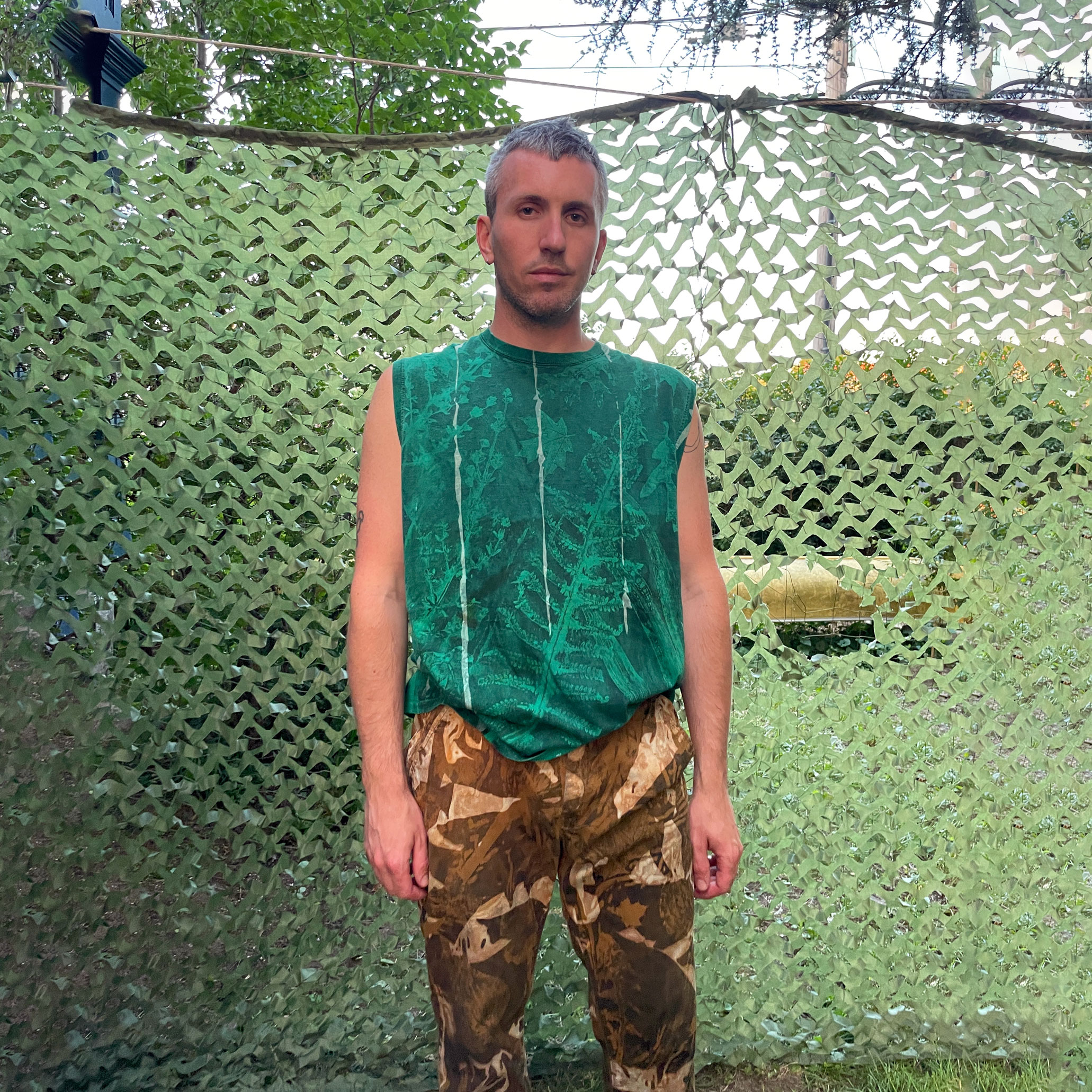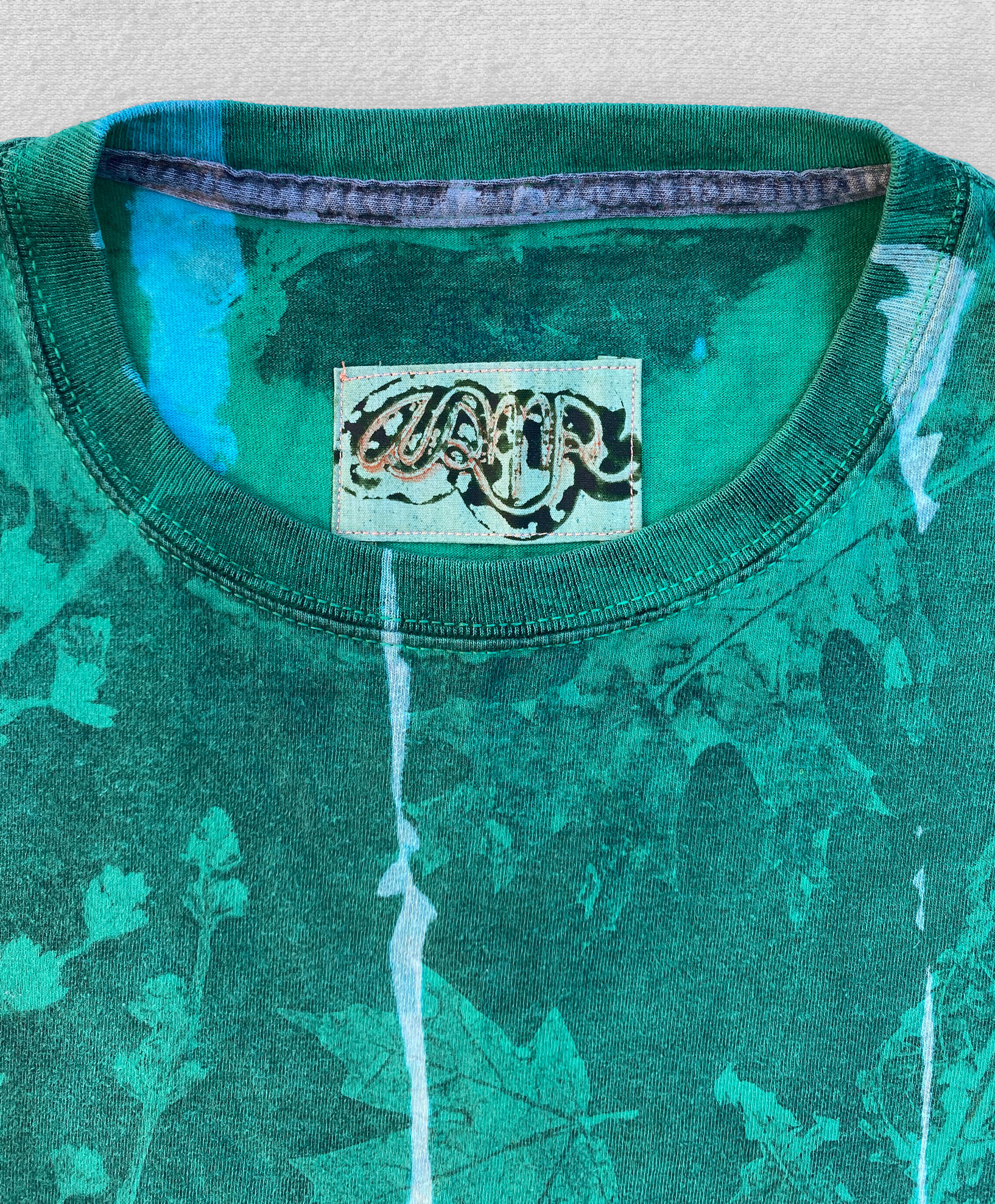 1-of-1 drawstring shorts hand dyed and bleached in Providence, RI using sustainably sourced local foliage on a vintage garment