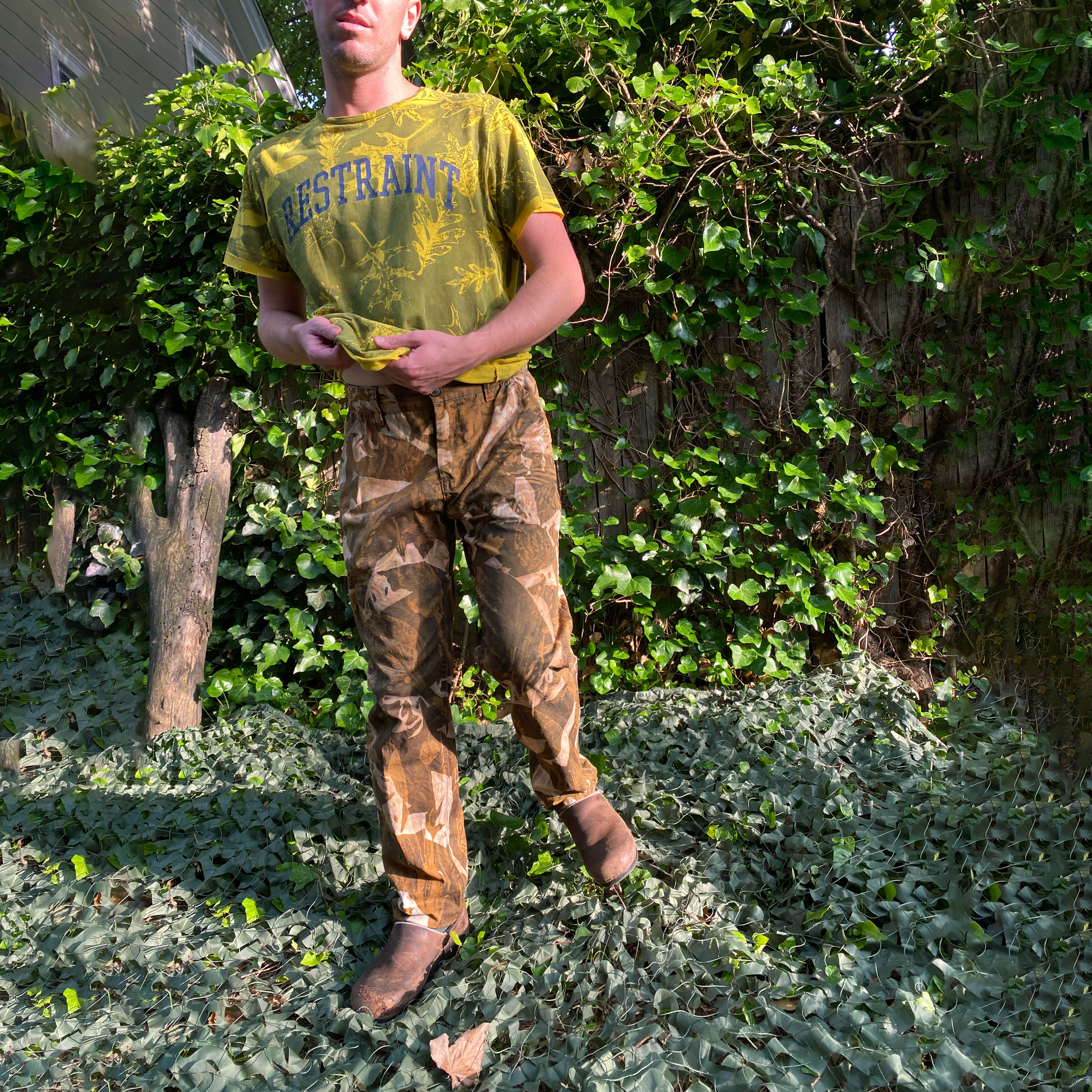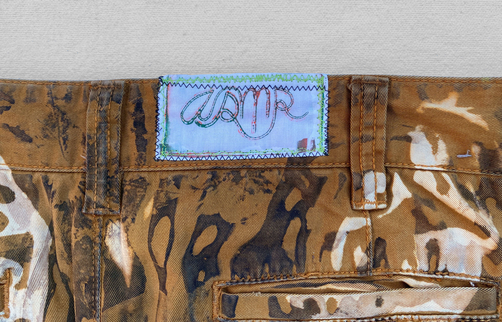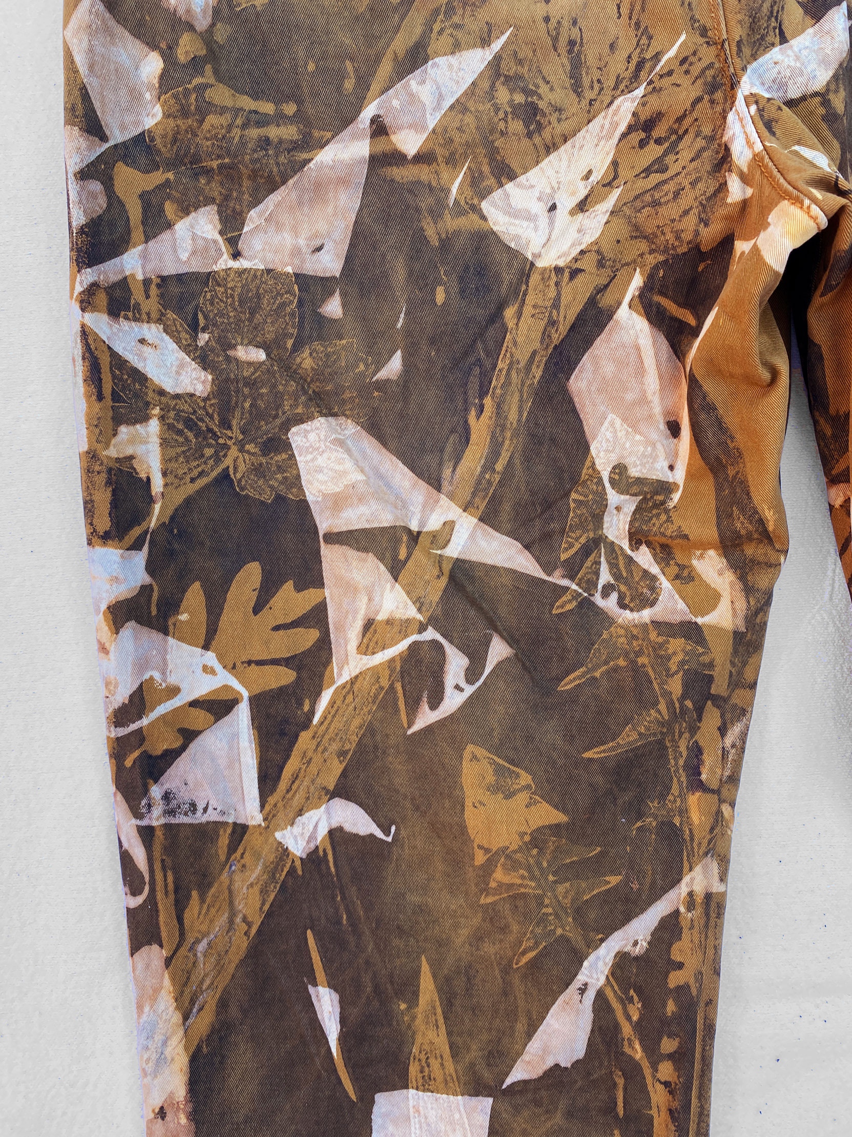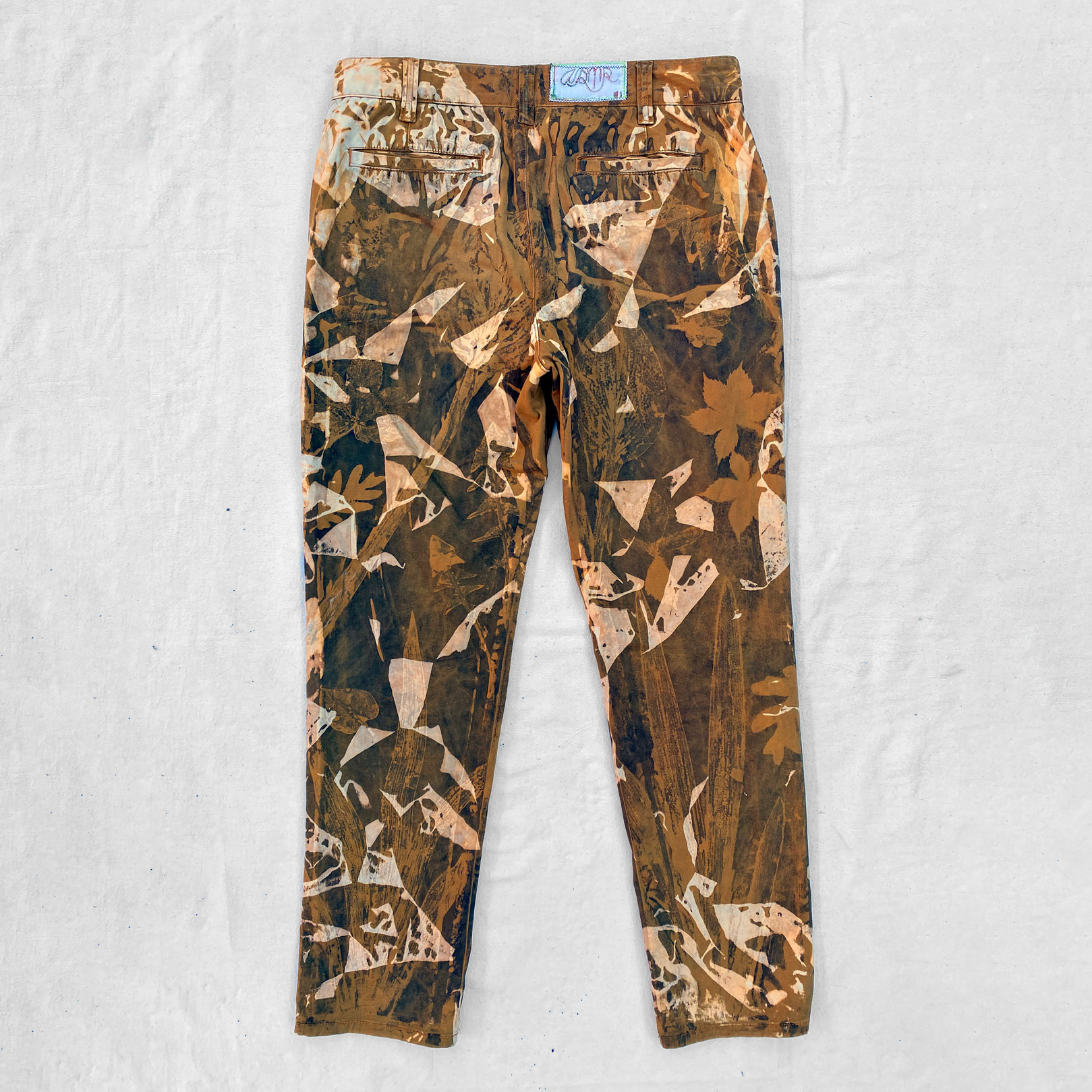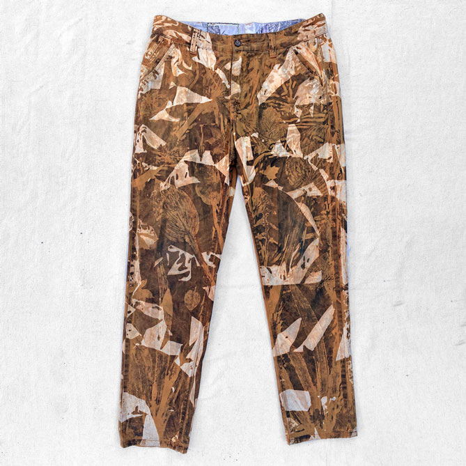 1-of-1 pants hand dyed and bleached in Providence, RI using sustainably sourced local foliage on a vintage garment