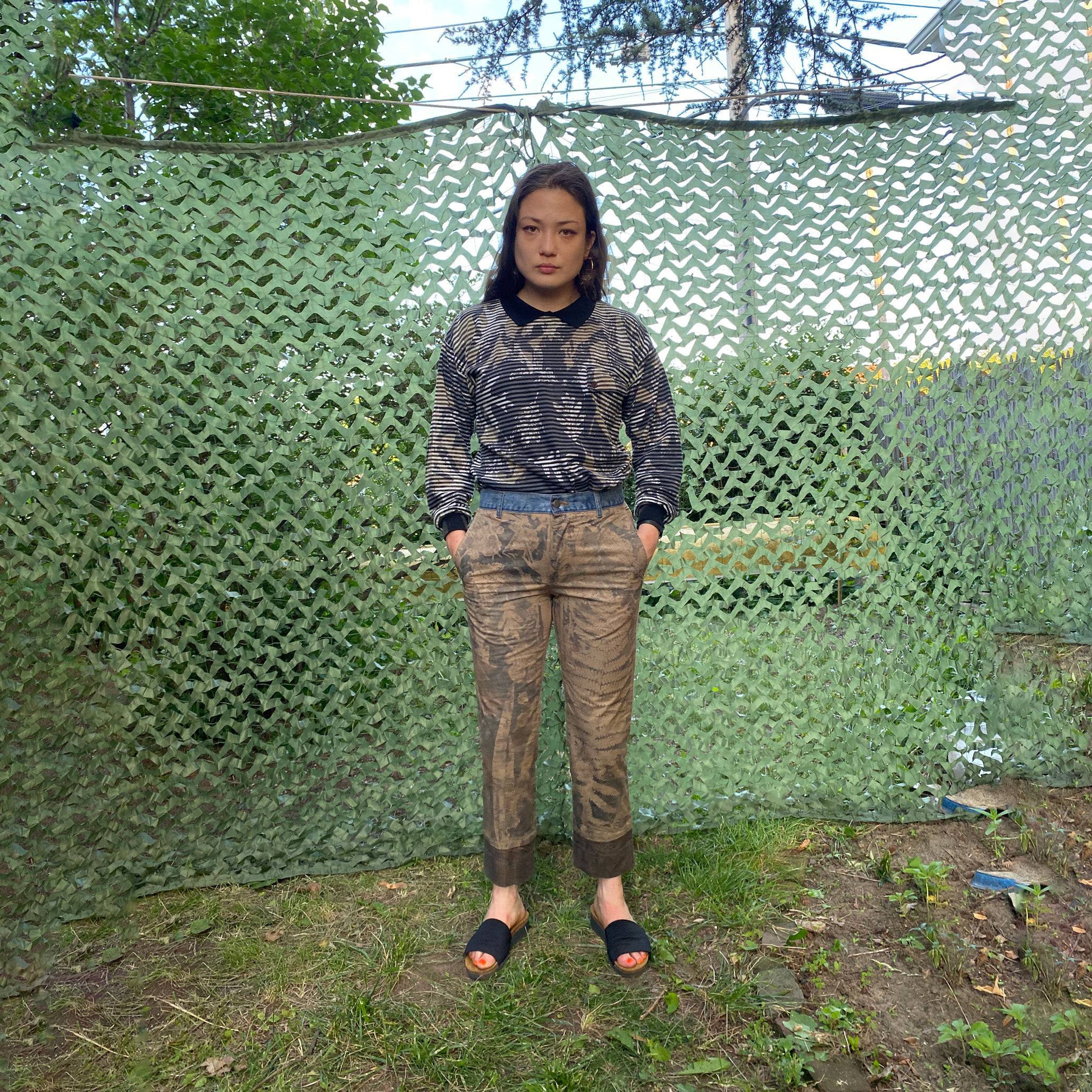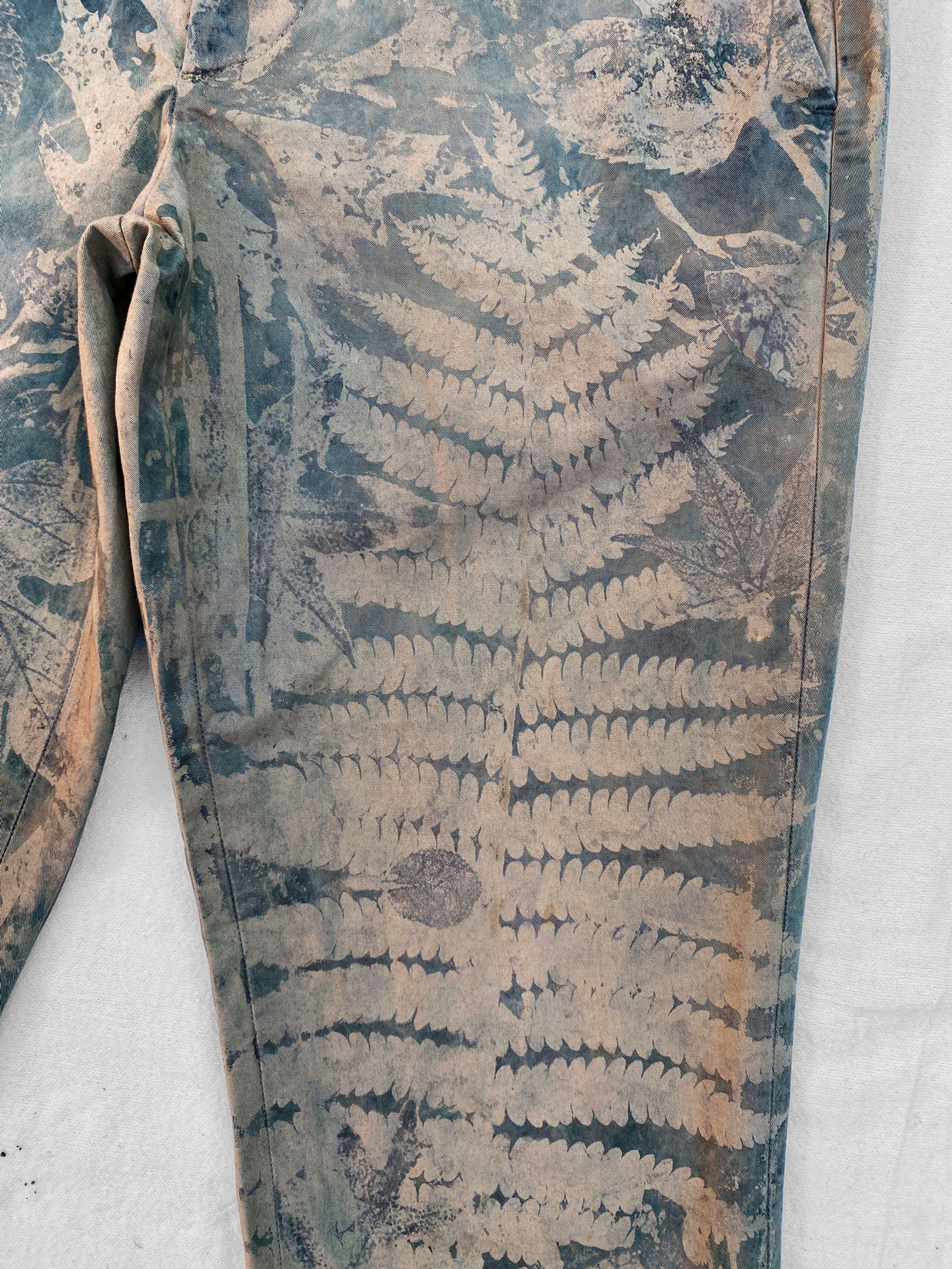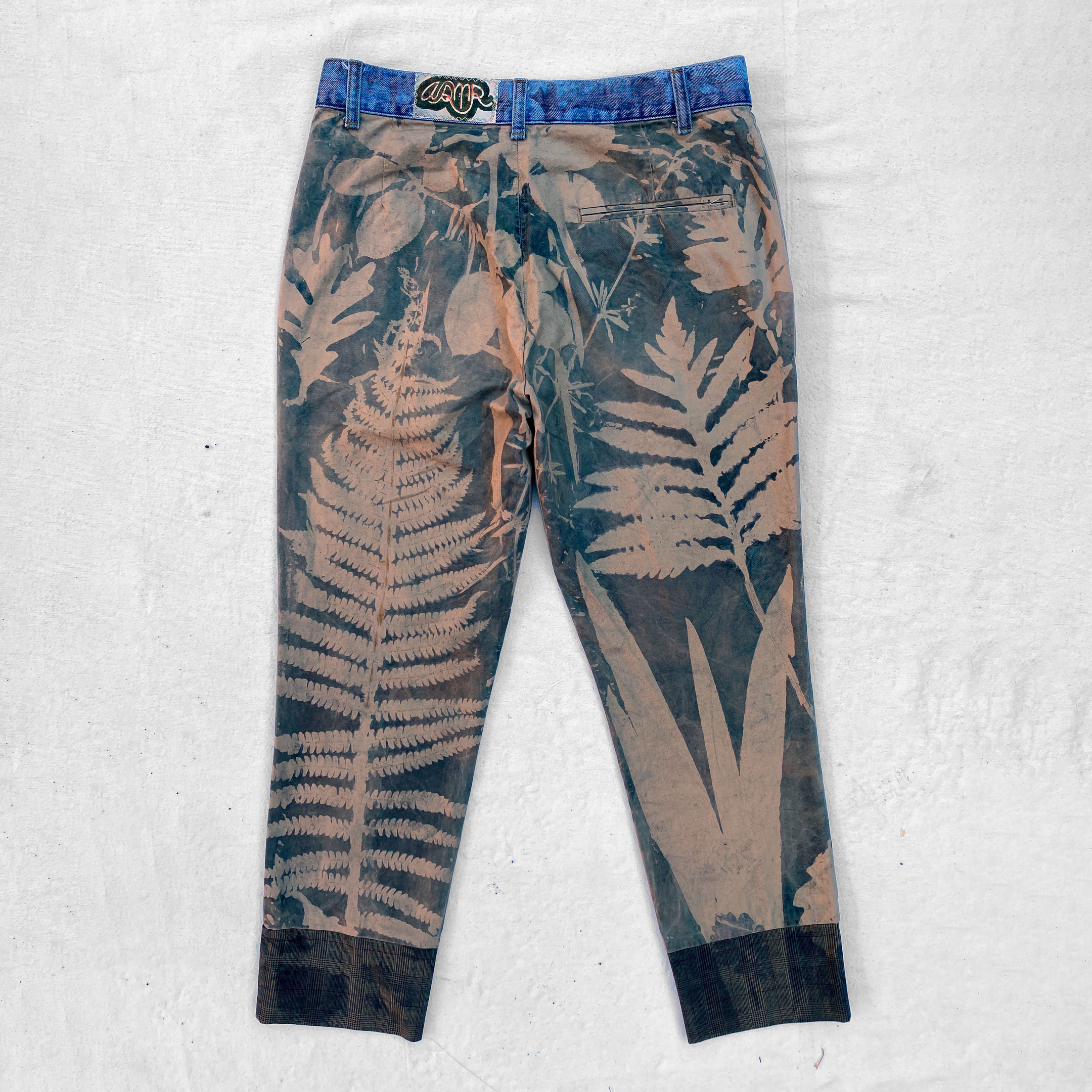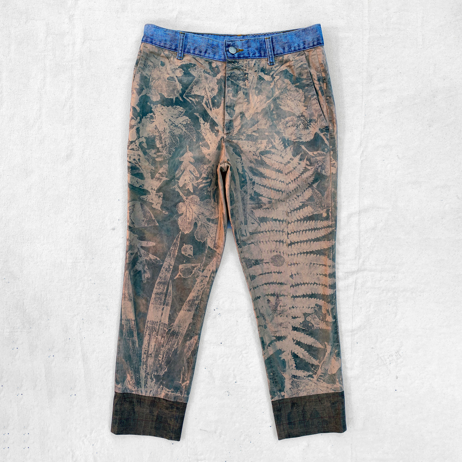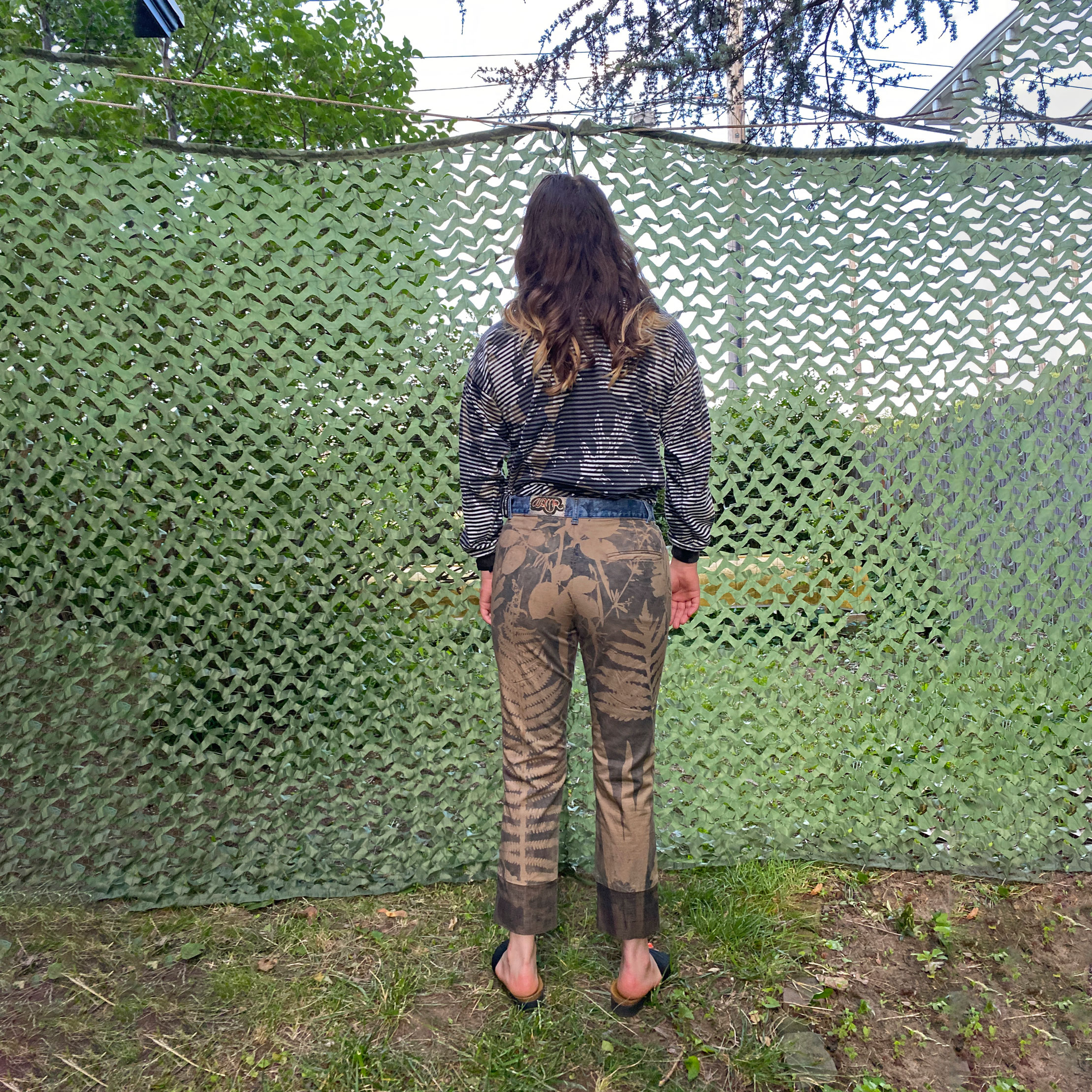 1-of-1 pants hand dyed and bleached in Providence, RI using sustainably sourced local foliage on a vintage garment