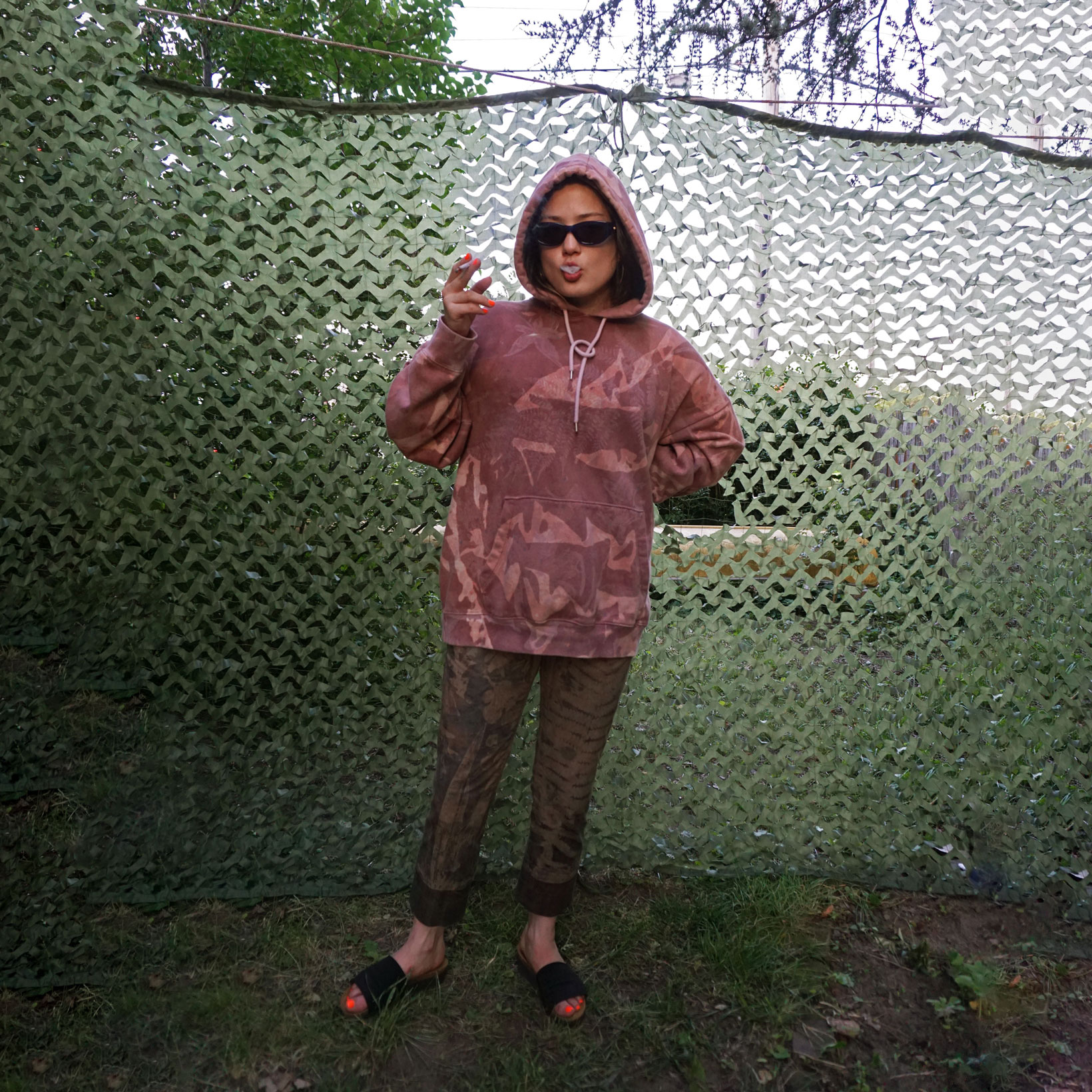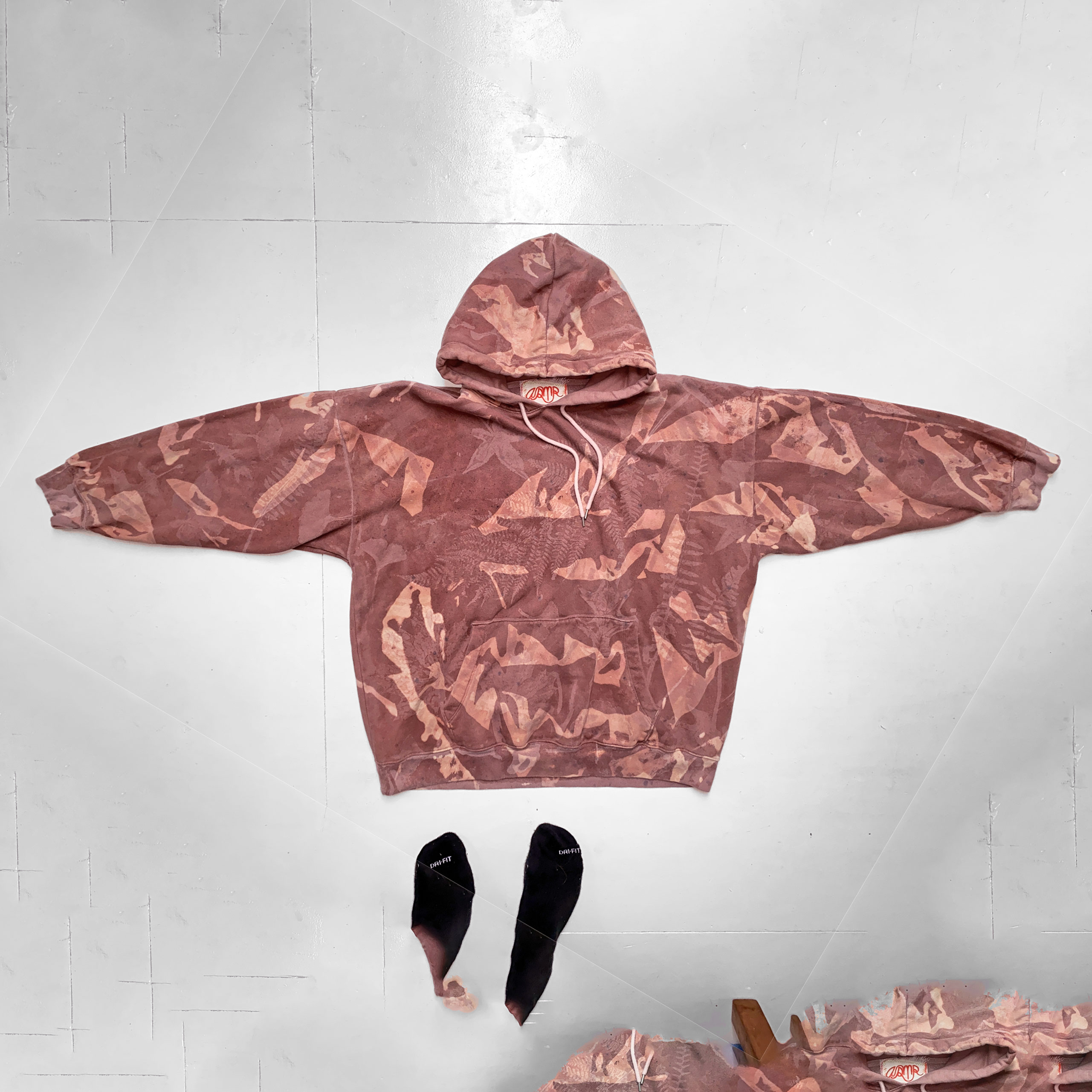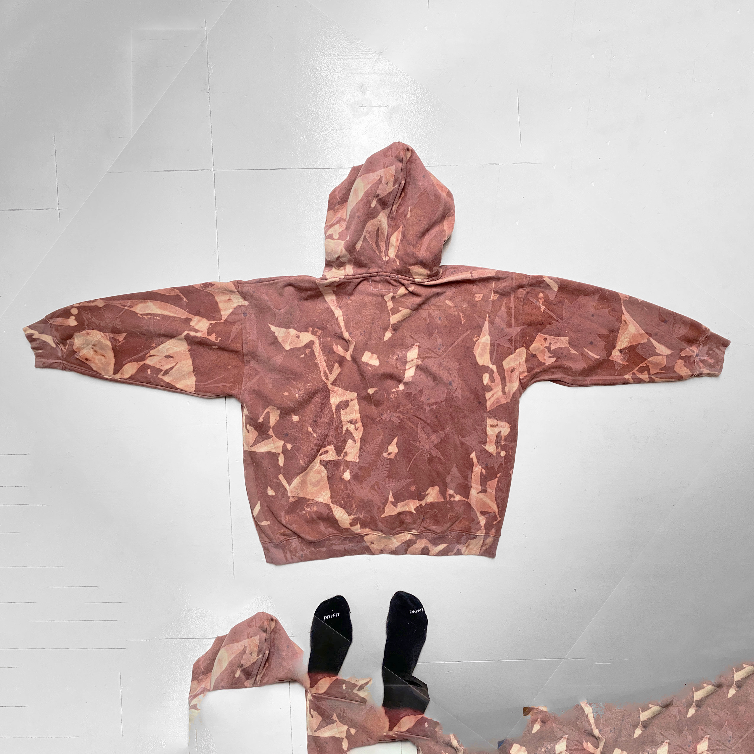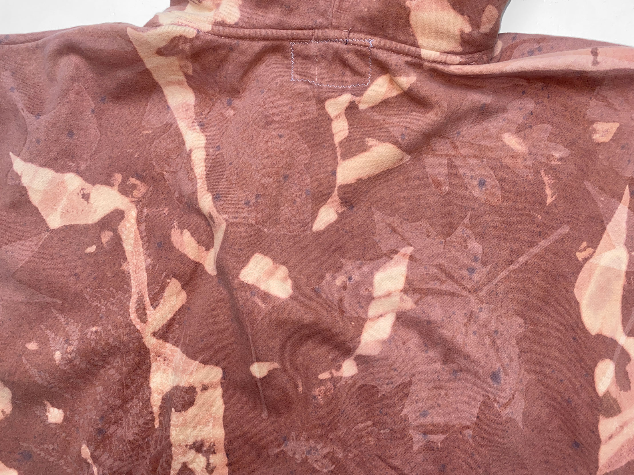 1-of-1 hoodie hand dyed and bleached in Providence, RI using sustainably sourced local foliage on a vintage garment
